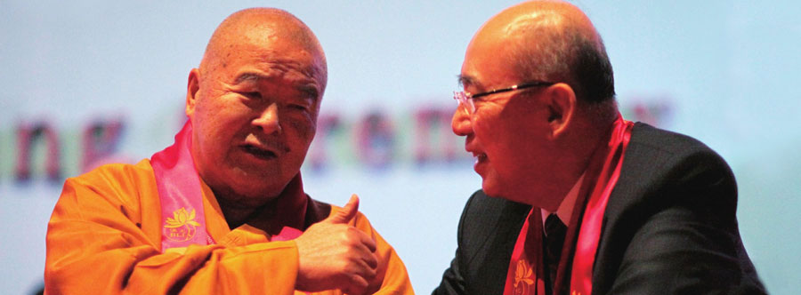 在世界佛教论坛的闭幕大典上,老友重逢。那愉快而熟络的神色,闪闪发亮。