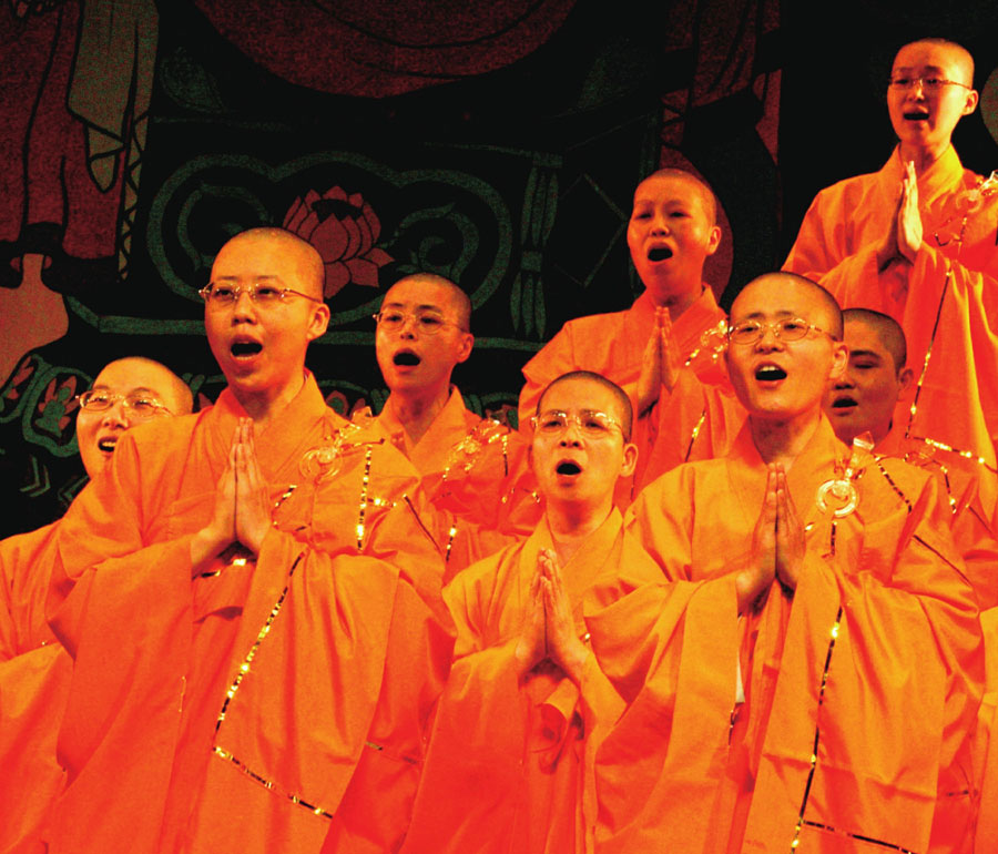 比丘尼的口型饱满,容光焕发。她们没有浓密飘洒的长发,没有蜜粉掠过脸颊,却显得分外动人。用最纯净的心歌唱,散发出的便是最自然的美。不刻意追求美,才能展露最真实的美;不刻意追求拥有,就能获得一切。