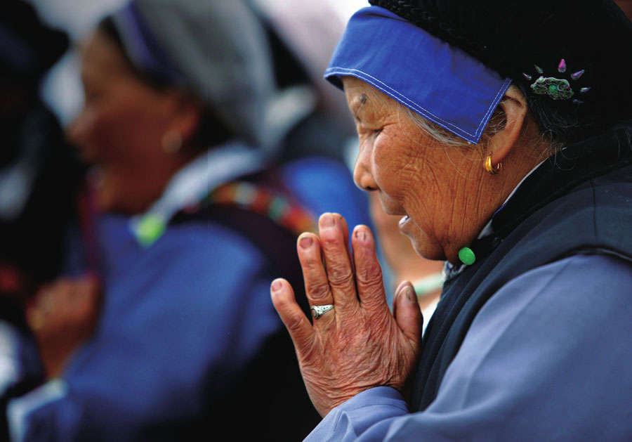 她的后人,虔诚地合十双手,在海浪对面,记挂着远方的归人。