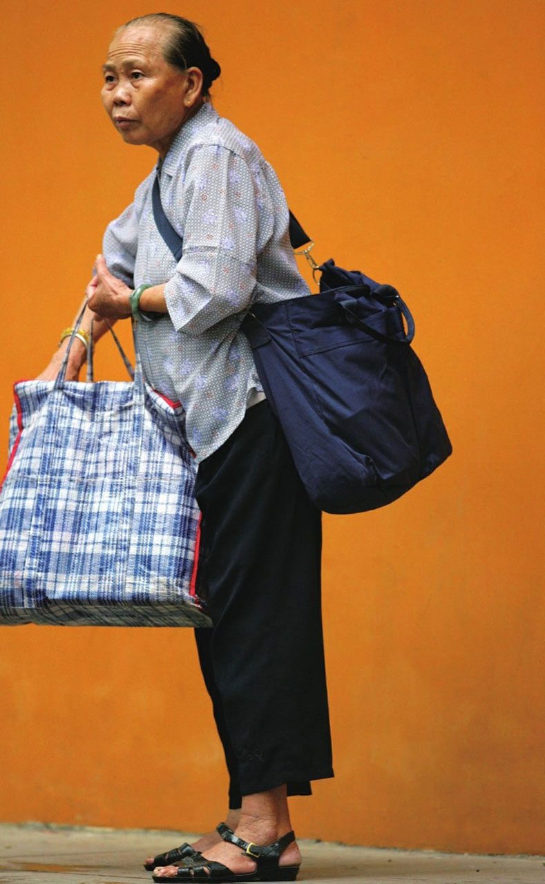 广东韶关,南华寺,清晨进香的客家老母亲。灰扑扑的素花衬衣,过时蹩脚的塑料凉鞋,简陋的编织袋和一个也许从哪个孙子那儿淘汰下来的书包。皱纹在不知不觉中密布她的额头,仿佛精心雕刻的纹路。